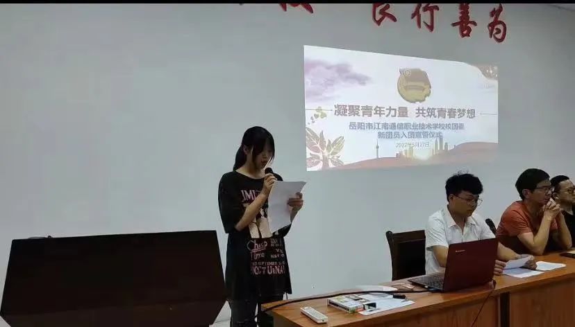 5月27日晚自習(xí),我校在會(huì)議室舉行“凝聚青年力量,共筑青春夢(mèng)想”岳陽市江南通信職業(yè)技術(shù)學(xué)校2022年新團(tuán)員入團(tuán)儀式,團(tuán)委書記谷祥錦主持入團(tuán)儀式并代表學(xué)校向新團(tuán)員表示熱烈的祝賀和誠的歡迎,祝賀你們從此成為一名光榮的中國共產(chǎn)主義青年團(tuán)的團(tuán)員,你們的加入使我們學(xué)校團(tuán)組織壯大了力量,為我們團(tuán)組織輸入了新鮮血液,注入了新的活力。